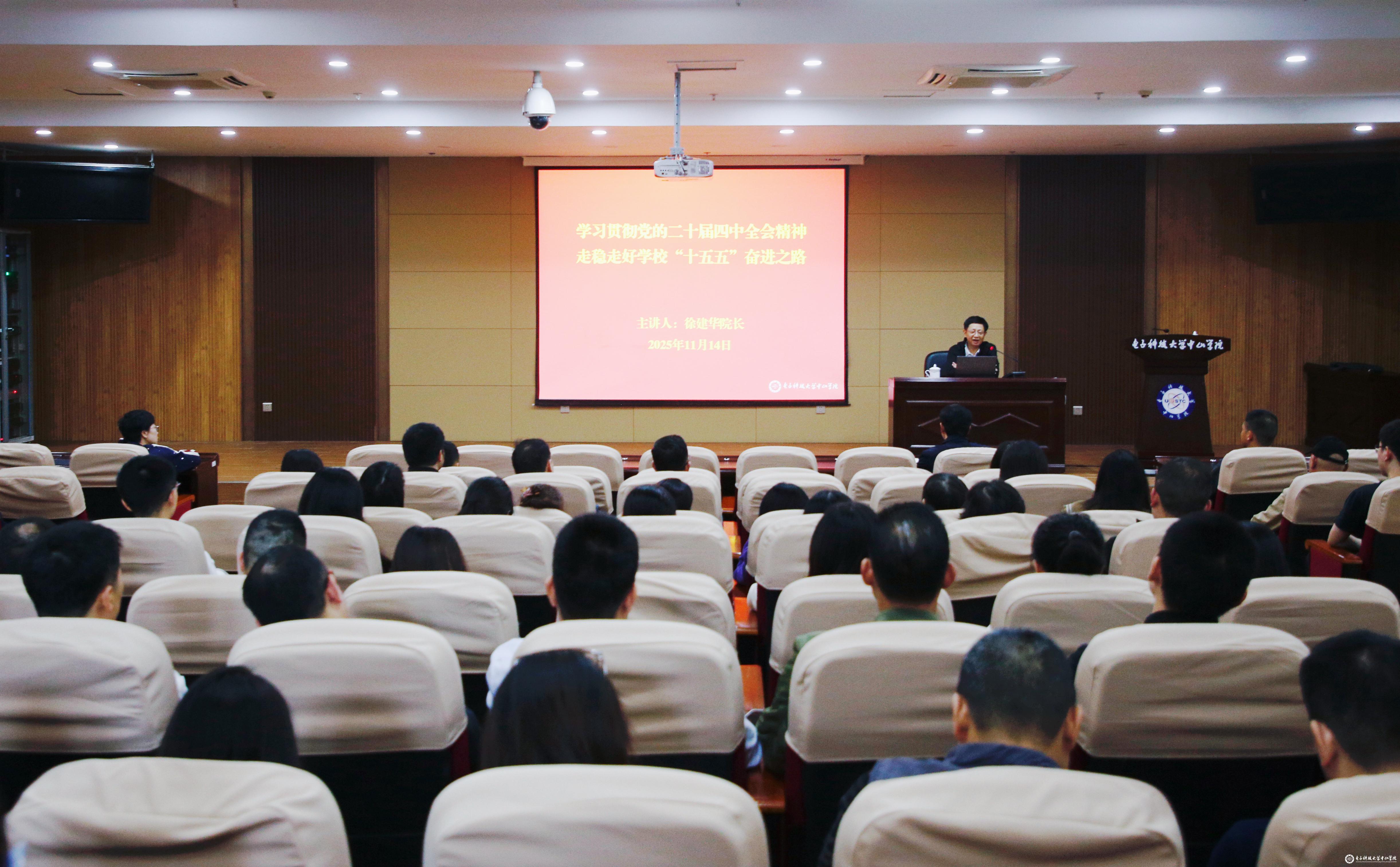 为深入学习宣传贯彻党的二十届四中全会精神,进一步凝聚共识、明确方向,切实把思想和行动统一到党中央决策部署上来,汇聚形成推动学校“十五五”时期高质量发展的强大动力,12月5日,学校党委书记张琦为全体中层干部作党的二十届四中全会精神宣讲报告。宣讲报告会由党委委员、组织部部长杨晓阳主持。